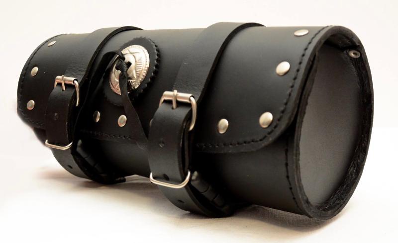 Très belle trousse à outils en cuir rigide. Elle mesure environ 29cm de long par 13cm de diamètre. Il est possible de mettre une sacoche dites de fourche un peut partout .. sur la fourche , sur le guidon , sur le cadre ou ailleurs. C'est idéal pour mettre de petites choses.