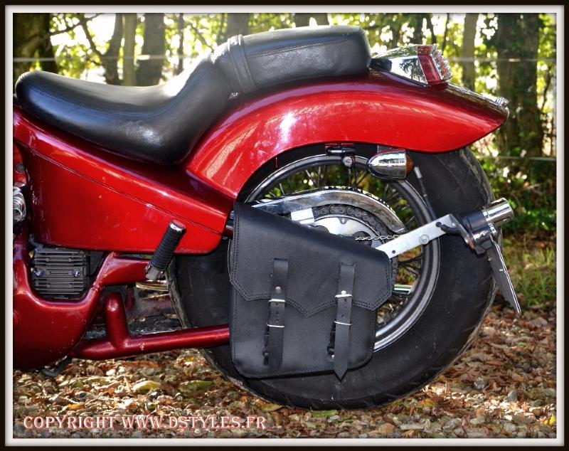 Belle sacoche latérale en Croute de cuir de couleur Noir. Les sacoches latérales sont pratiques car elles ne prennent pas beaucoup de place, mais peuvent accueillir le minimum obligatoire quand on roule tel que les gants, les lunettes, les papiers, et tout autres petits objets léger. Les sacoches se fixent en quelques minutes grâce aux sangles en cuir qui sont fournies.